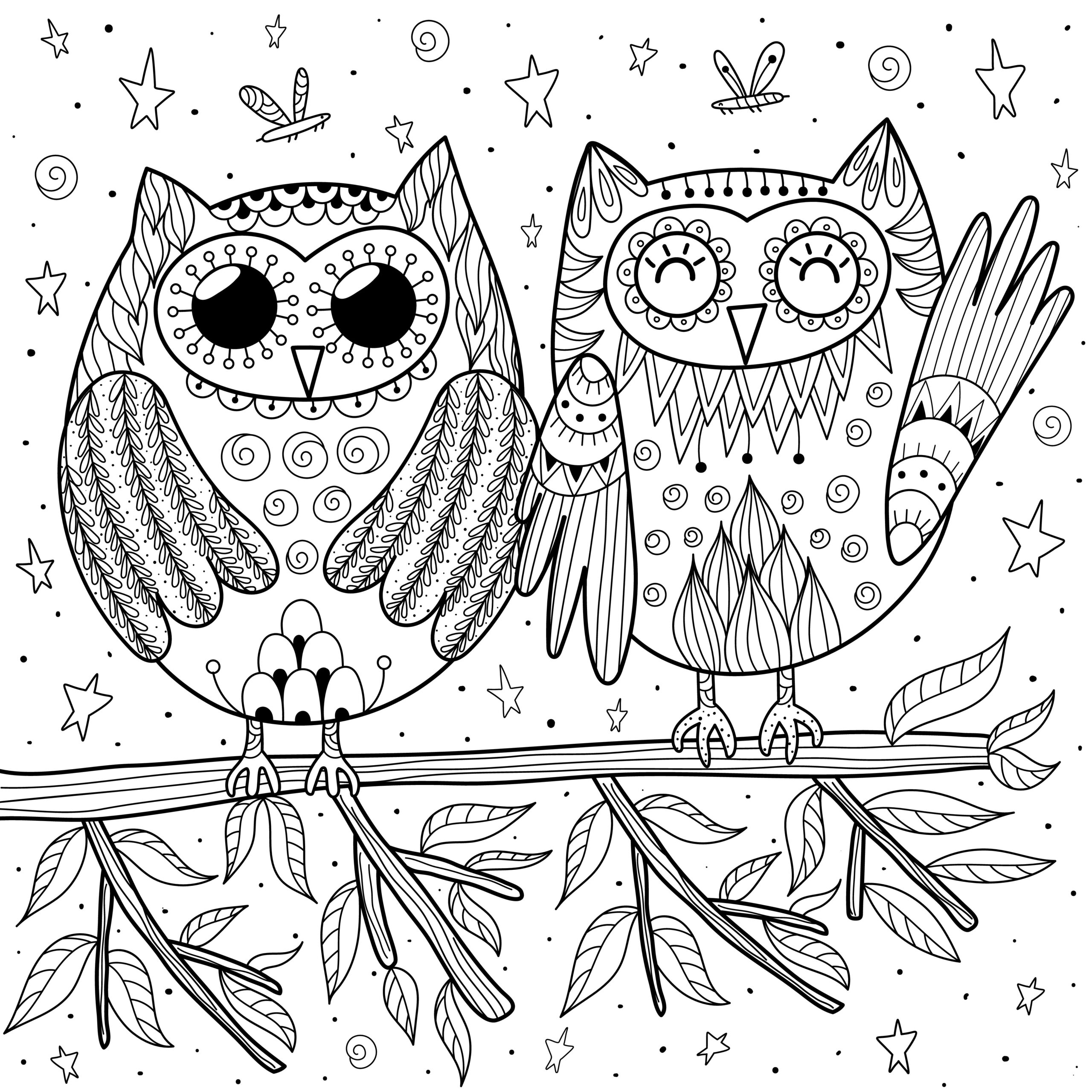 Antystresowe kolorowanki z motywem sowy